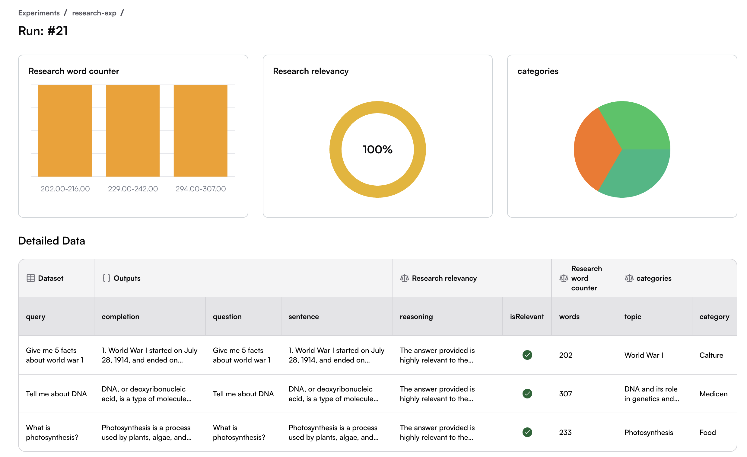 Create an experiment script that runs your AI flow. An experiment consists of three key components: