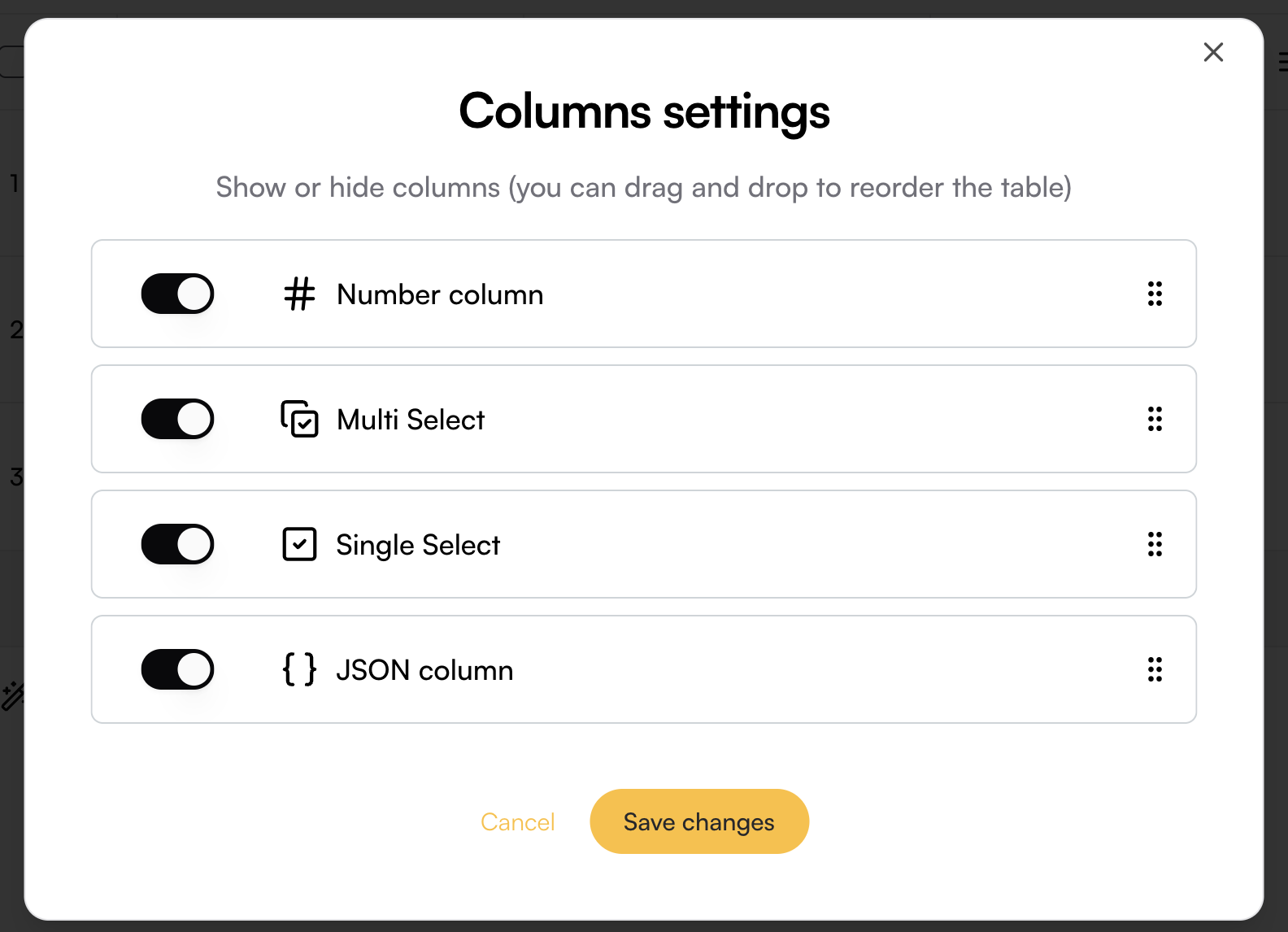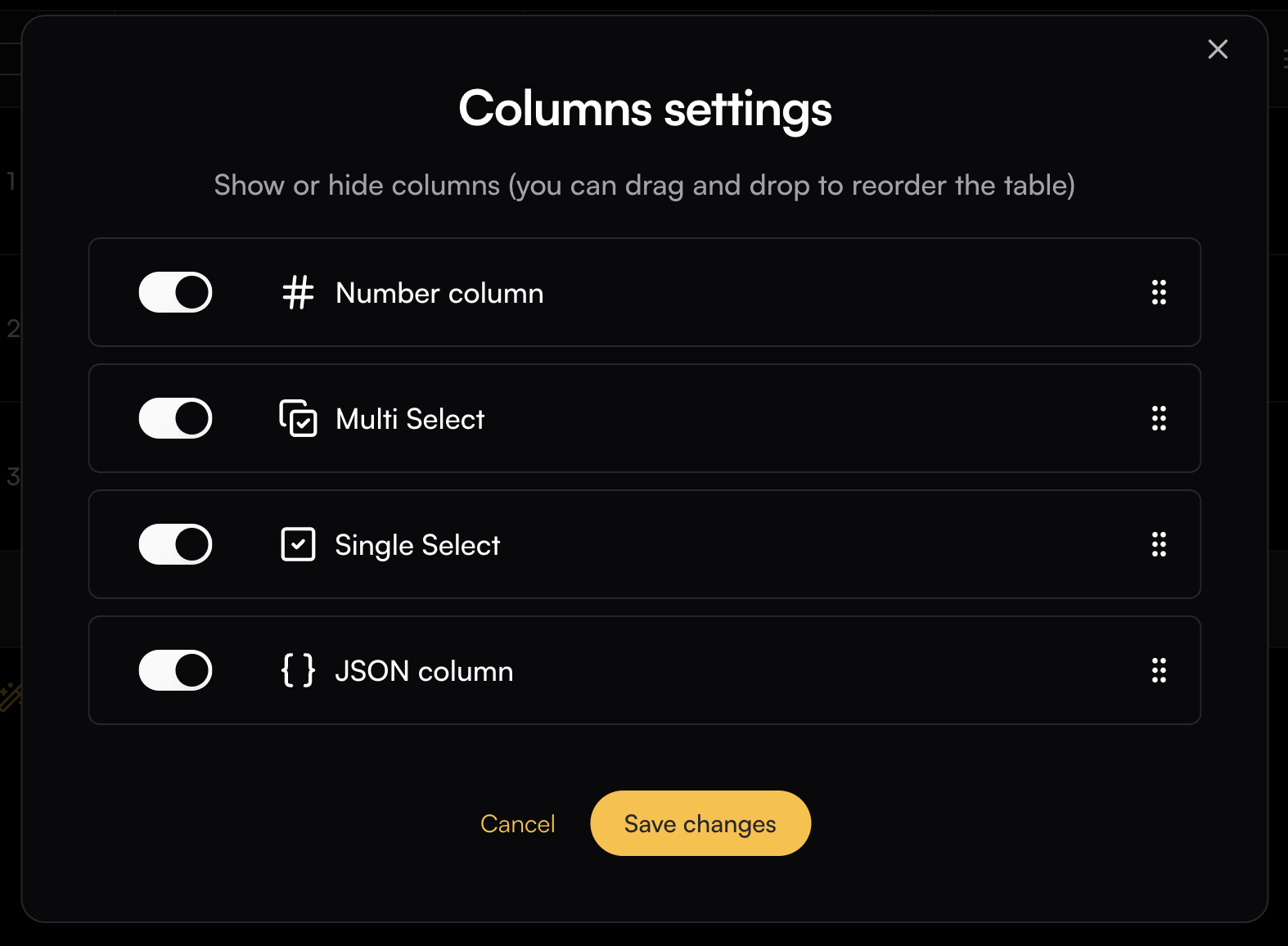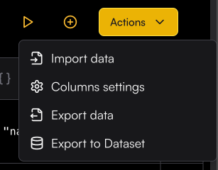 Column Settings lets you hide specific columns from the Playground and reorder them as needed. To open the settings, click the Playground Action button and select Column Settings